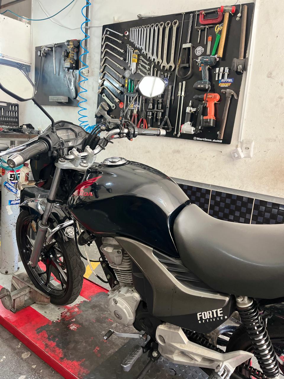 Sempre sonhei em voltar a ter minha própria oficina de motos. Em 2022, comecei a realizar alguns serviços mecânicos à noite na garagem de casa, enquanto trabalhava durante o dia como CLT. Com o aumento da demanda e sempre com muita fé em Deus, pude realizar esse sonho novamente.